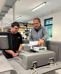 Petra Nellissen aus der Verwaltung der DHfPG/BSA-Akademie tauschte für einen Tag ihren Arbeitsplatz mit Love Vaihinger aus dem reha-Druckcenter.